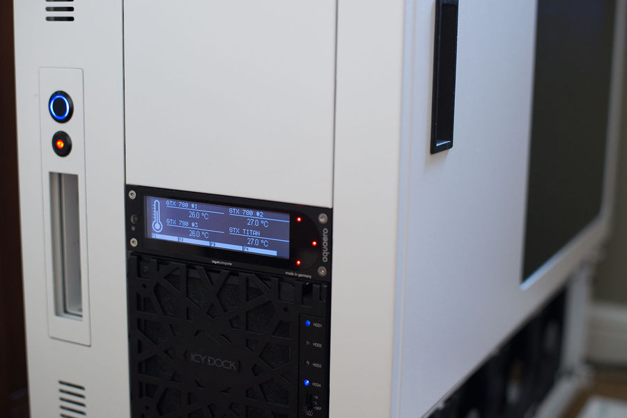 In the mean time, I was wondering how you got your aquaero to read all your graphic cards temp? Also, having a vertex in your reservoir, is it a good thing? Finally, do you use a Flow Sensor?