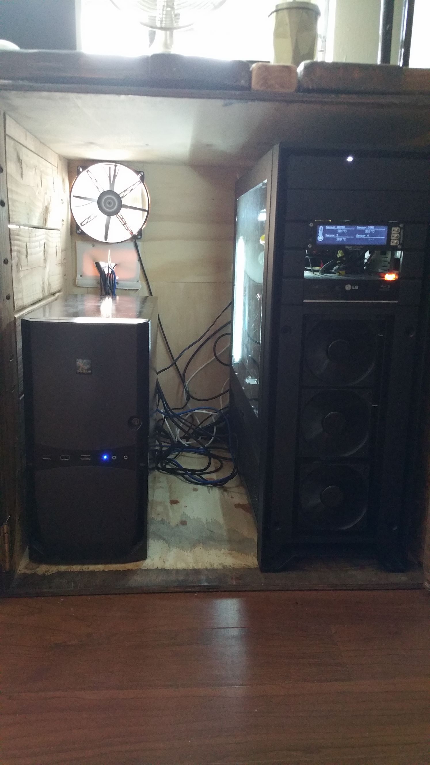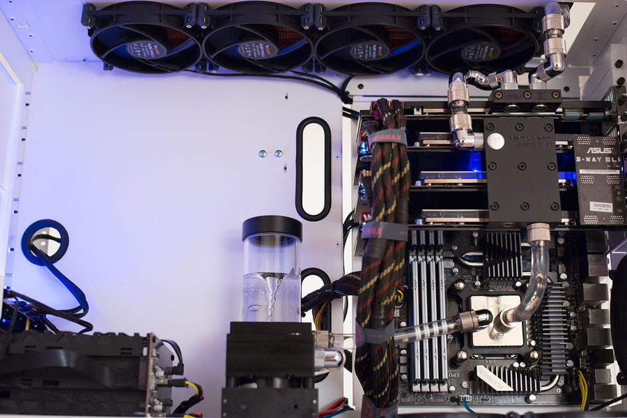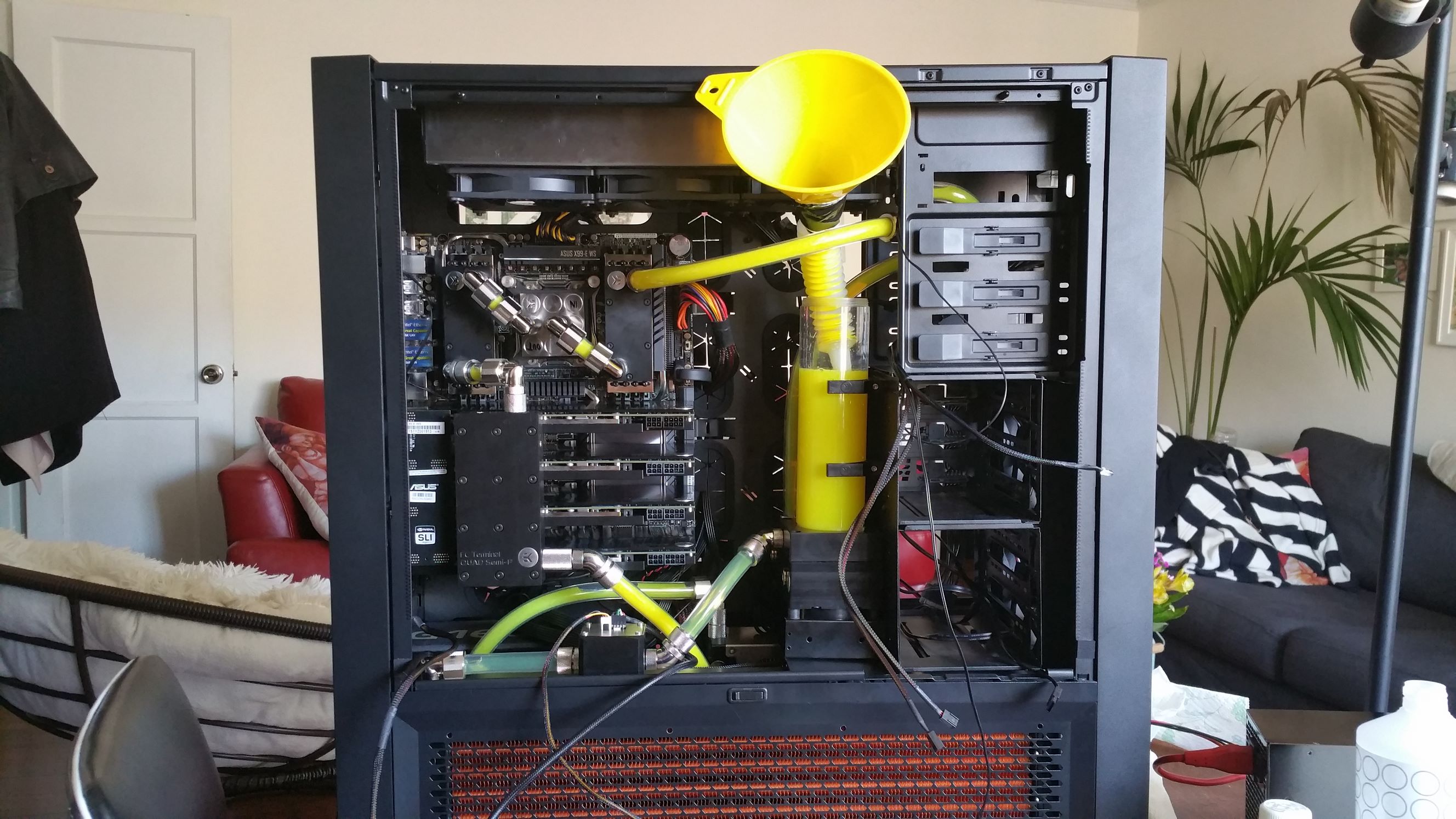 Here is the actual system If I'm not mistaken, you are telling me that, in the lower chamber, I should be pushing air from outside the case, trough the radiators, on both 480 and 240, right? So all the hot air would then be created from the bottom (with 480 pushing air against 240), then the hot air would come up inside the tower, then would be distributed to the exaust fan at the top rear, and the 360's fan top, right?