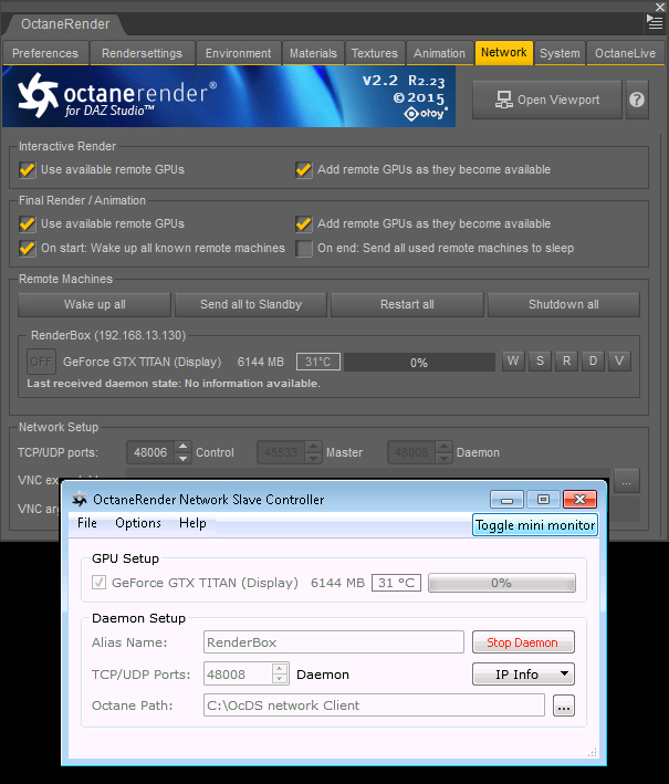 My master and slave nodes can see each other, I can restart and suspend the slave using the buttons in the DAZ Plugin network tab, I can see the temperature of the slave's GPU... Yet I'm not able to make the slave to actually help rendering...
