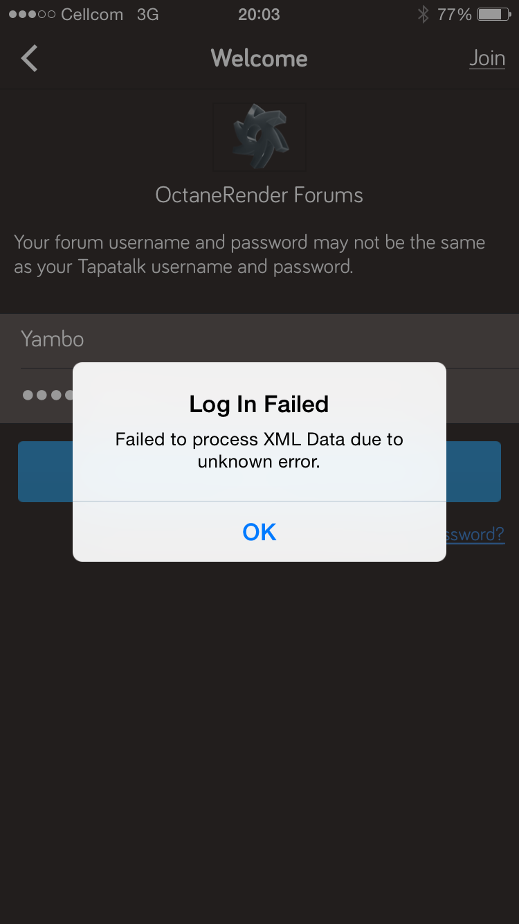 Cannot log in to Octane Forum.