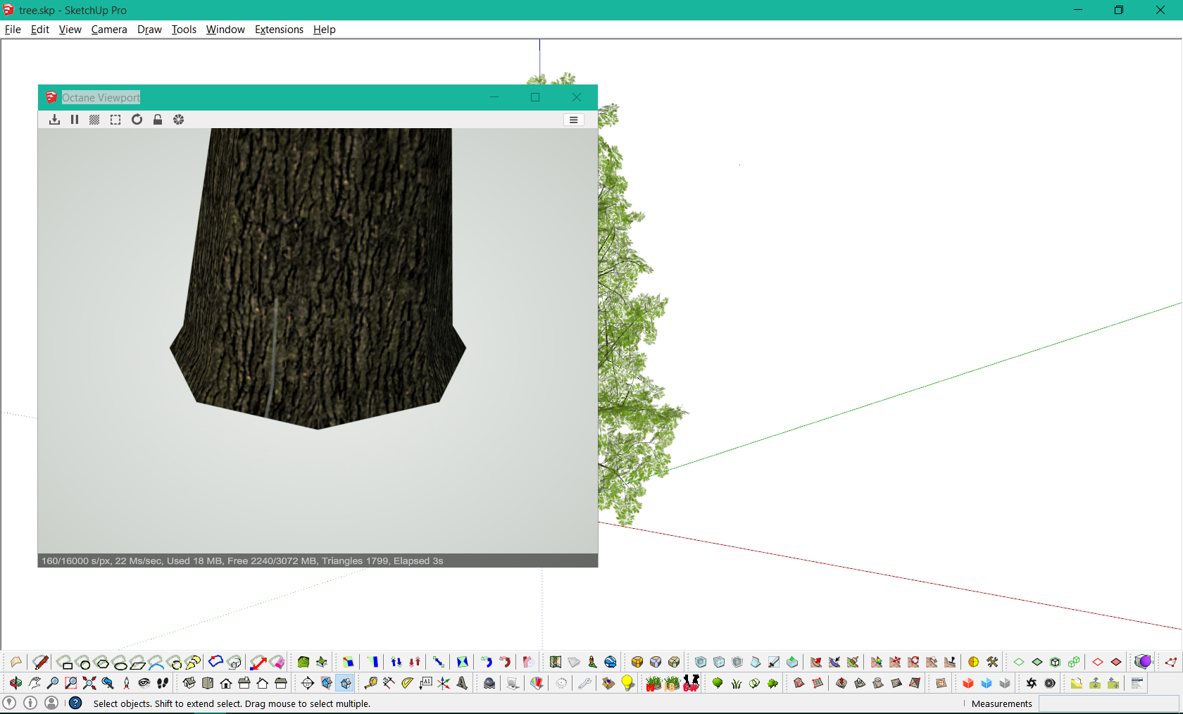 - The render window shows a zoomed in part of the tree.