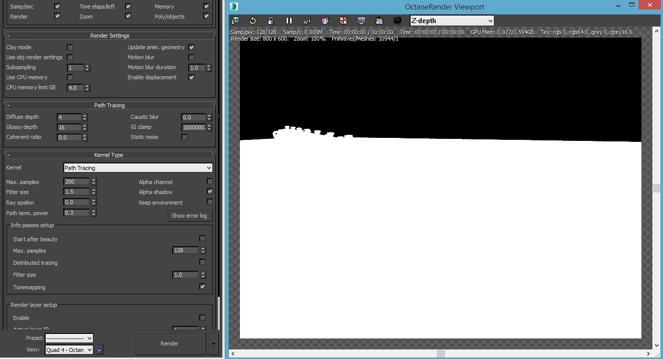 then you set a proper number of max samples and render using max's render button, the window containing z-depth pass will pop-up when the render is done.
