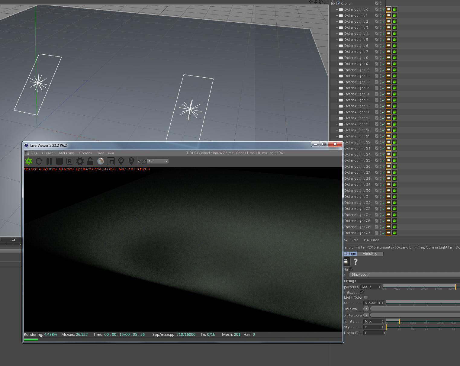 In the attached image the top section is rendered using one light and the one on the bottom uses that same light , in a cloner and duplicated 200 times (used this extreme number to show the problem).