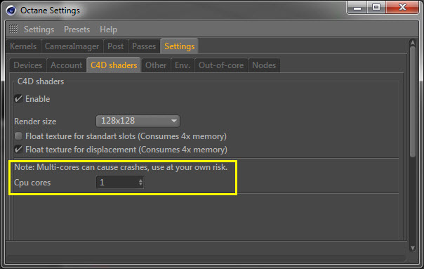 But i see the crashes are occuring in "RenderShader". It's about the baking C4D shaders. Please check again.skoeth wrote:its set to "1" too