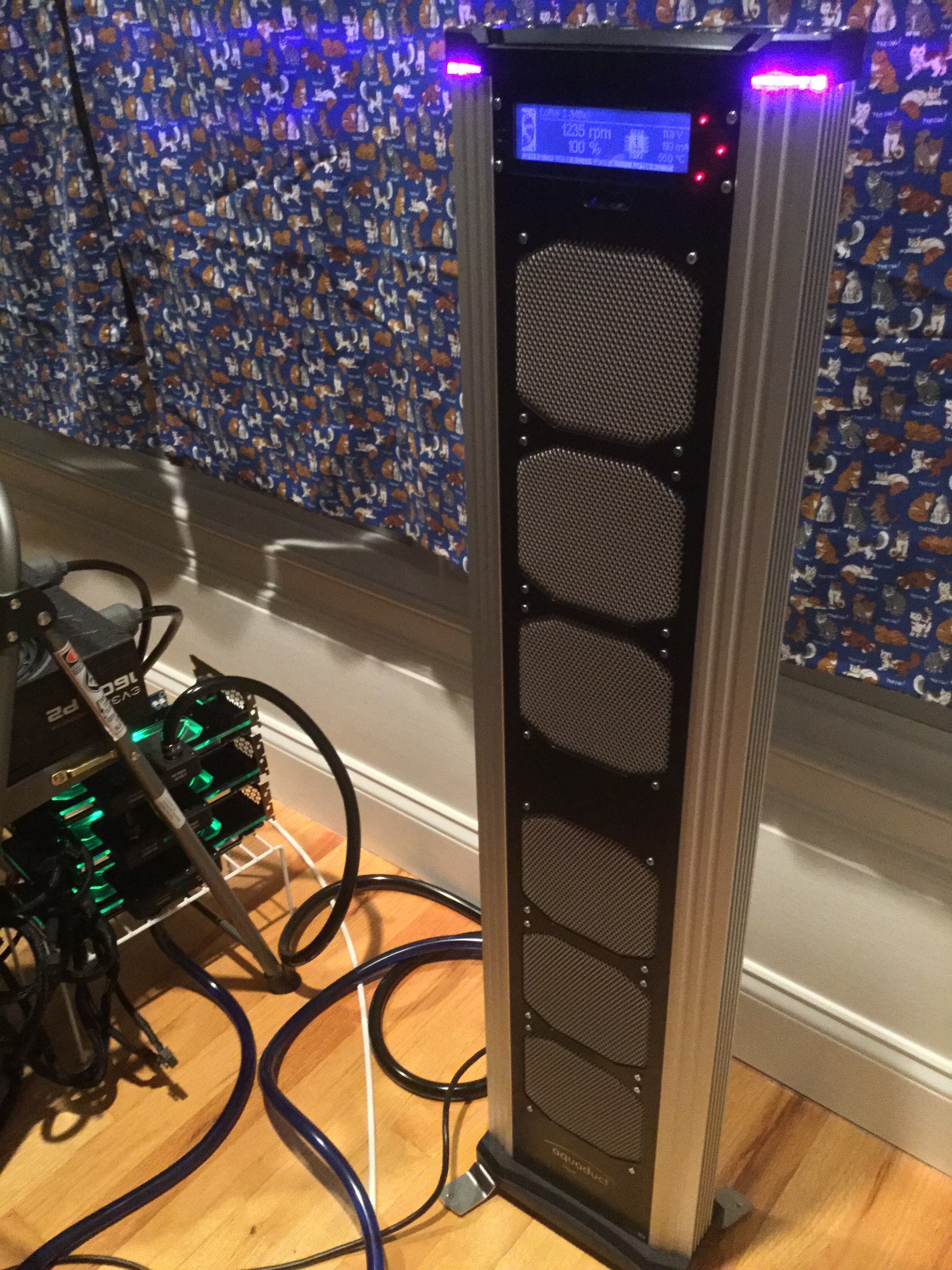 Head to head there really is minor performance advantage from the water (6 vs 6 GPU races). But when overclocked, the air cooled Amfeltec lags behind the water-cooled in extended runs as it has to cut itself at its temp limit, where the water cooled keep on rolling.)