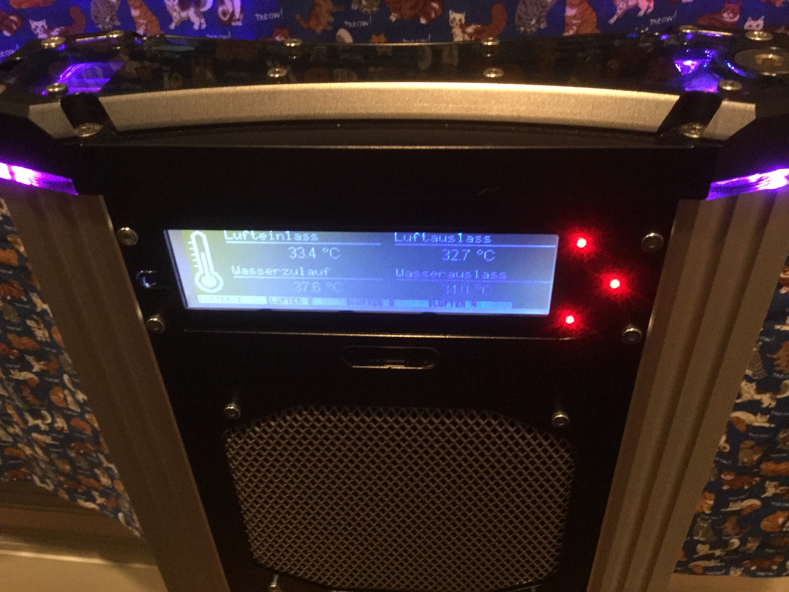 Aquaduct 720 after getting hammered by Octane in extended runs, purpled lights.  (lights are aqua blue, then get closer to red as water temp rises)