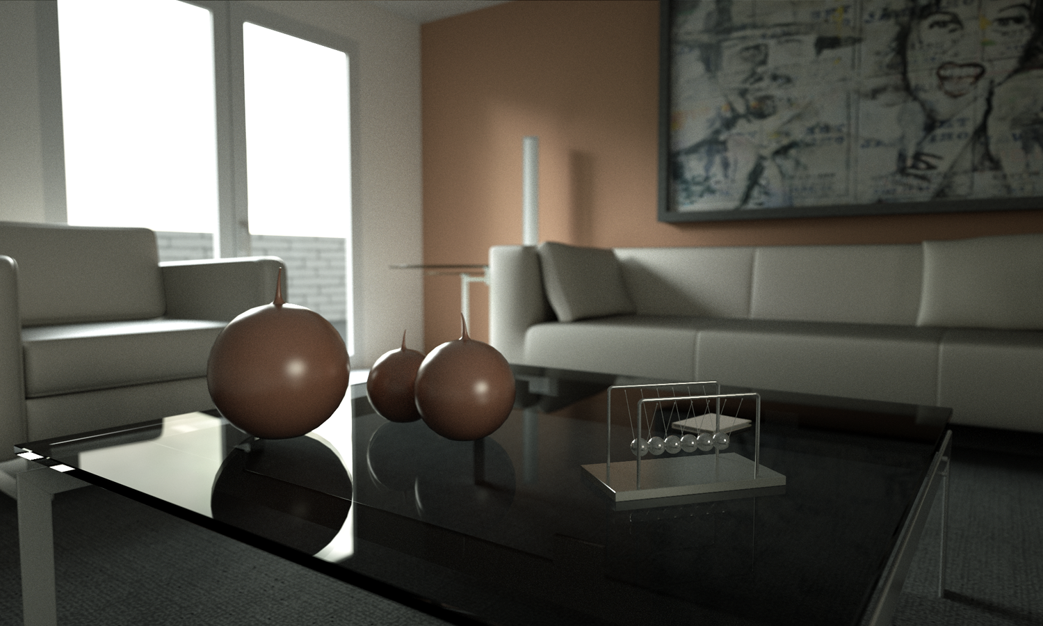Except for the office, all other renders are done with pathtracing at 3000x2000 and downsized to 1600x1000 or less. Most of them are rendered on GTX260 for no more that 1 hour, some even for 20 minutes. The new house project is rendered on GTX480 for 1 hour per frame at 3000x2000 - PT set to 16 and AA on.