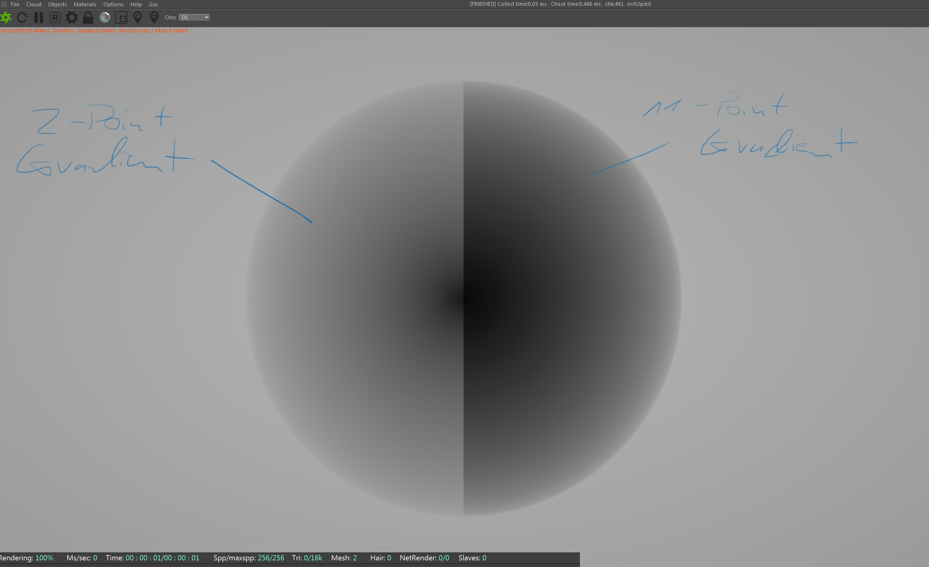 So my question is: what kind of interpolation does Octane's gradient use? is there a way to set it to behave linear even when using more than two points?