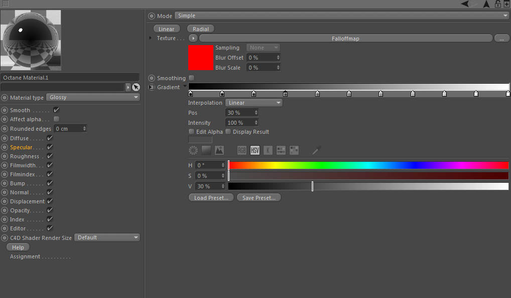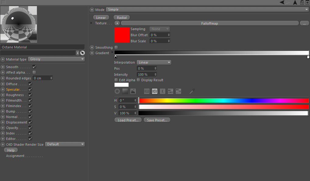 I've come to notice that Octane's gradient is behaving strangely. In this example I'm driving it by a falloff set to an index value of one (so thats a linear falloff).