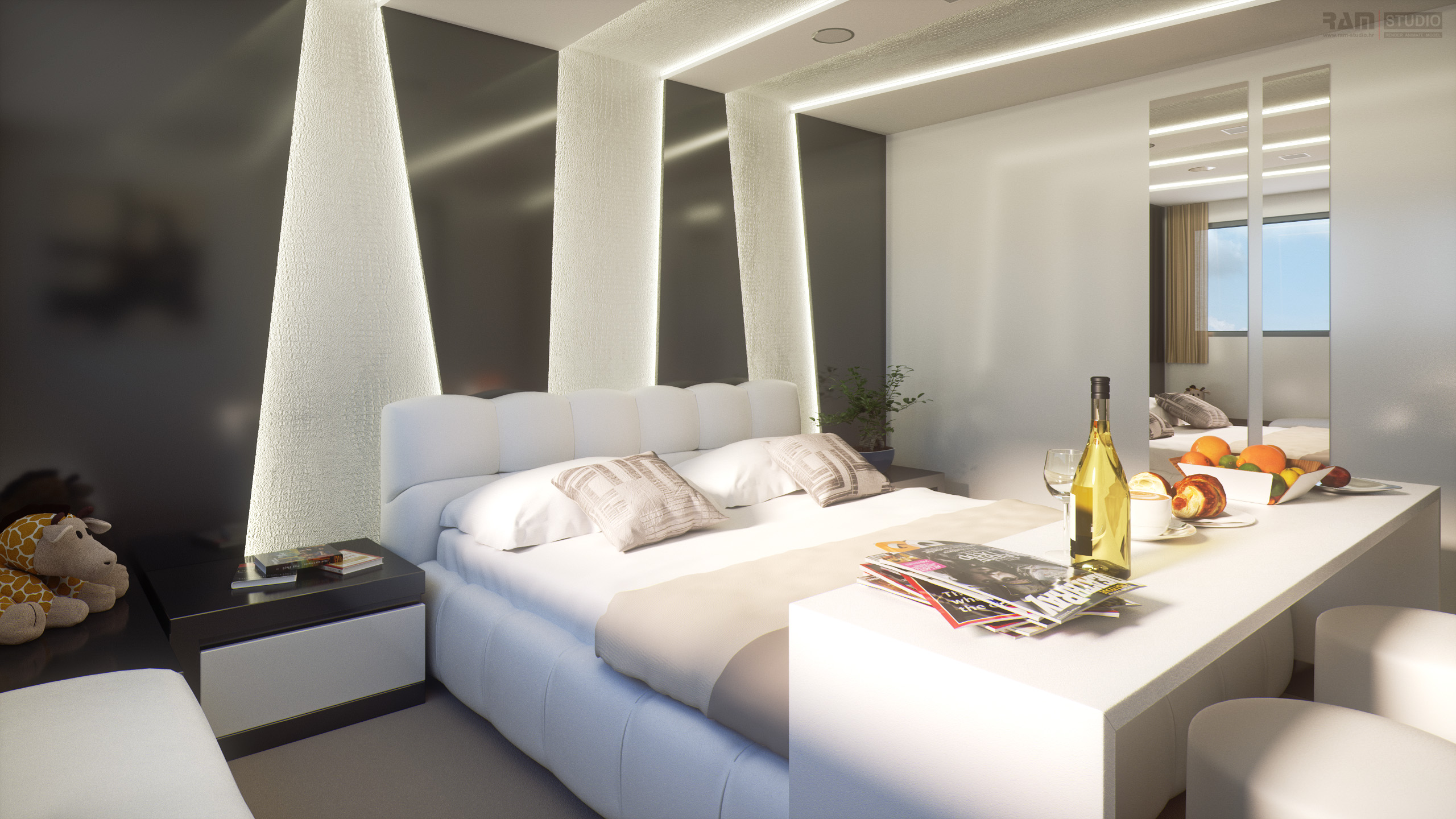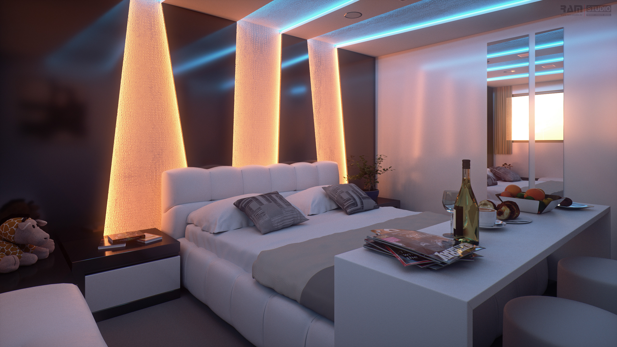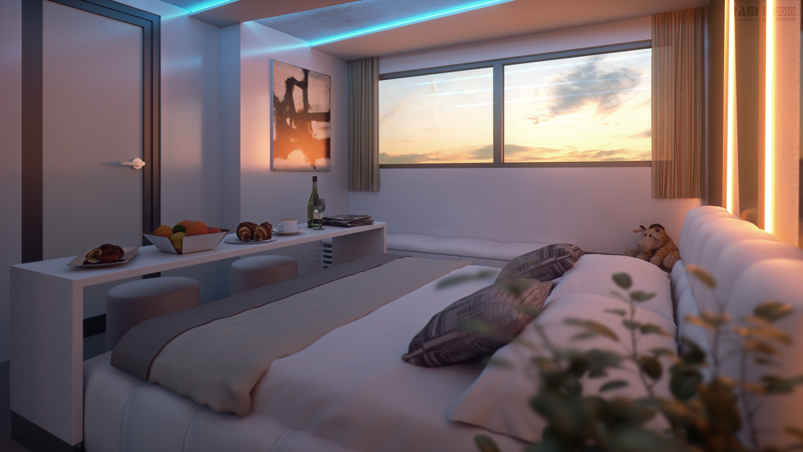 Here is one of my recent projects. It's modeling and rendering of Yacht Cabin - nothing fancy, Just regular passangers cabin which is pretty small (14m2) but supposed to have decent luxury feeling