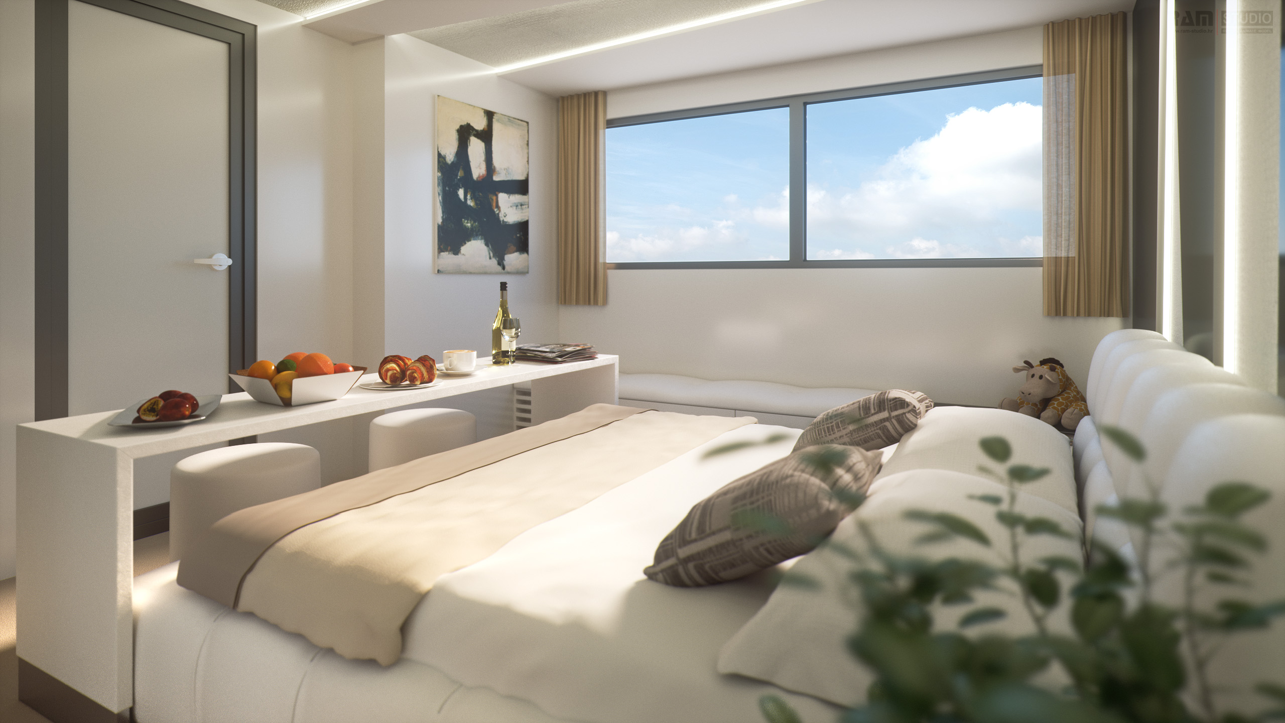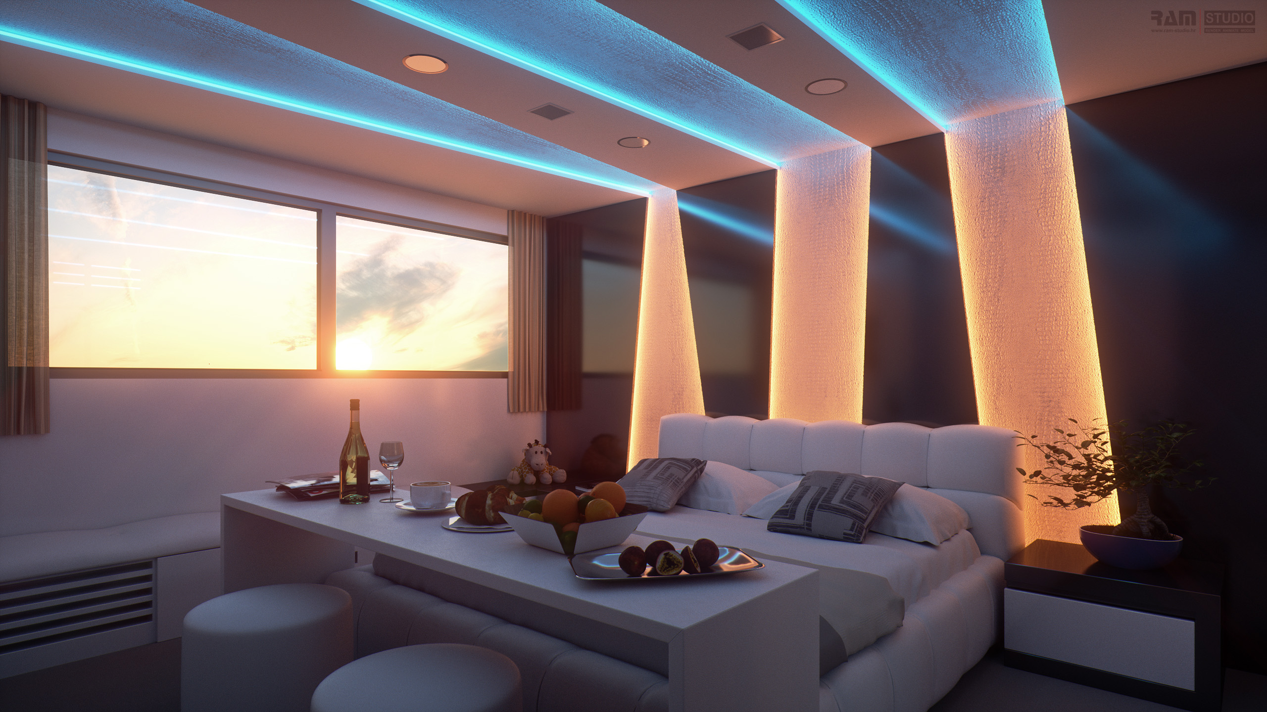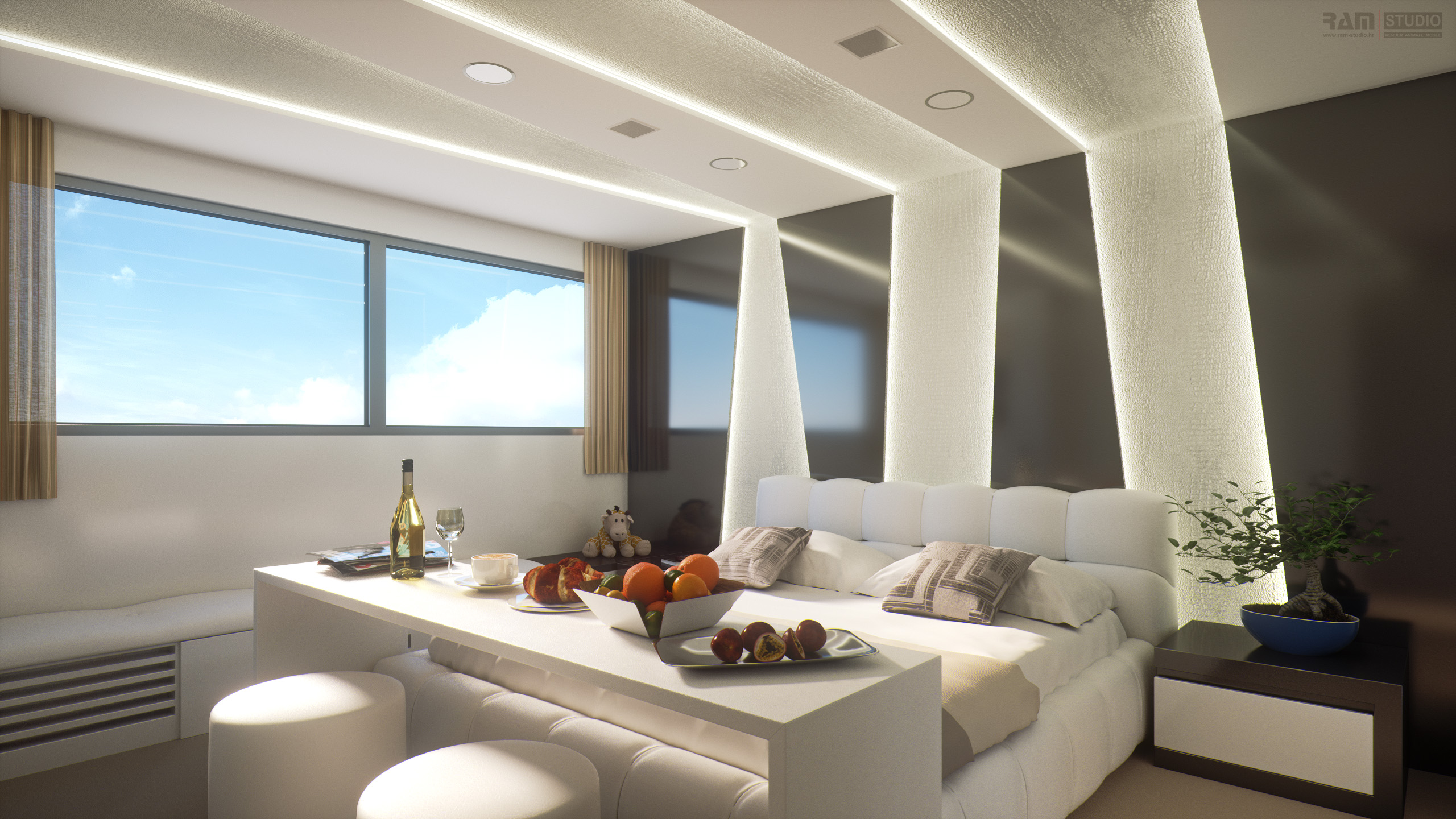 Here is one of my recent projects. It's modeling and rendering of Yacht Cabin - nothing fancy, Just regular passangers cabin which is pretty small (14m2) but supposed to have decent luxury feeling