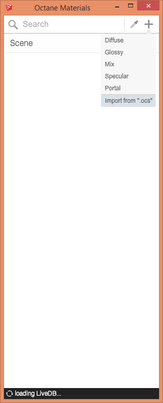 After that you can import the materials from .ocs file using the material editor. You can also choose what material import into the scene.