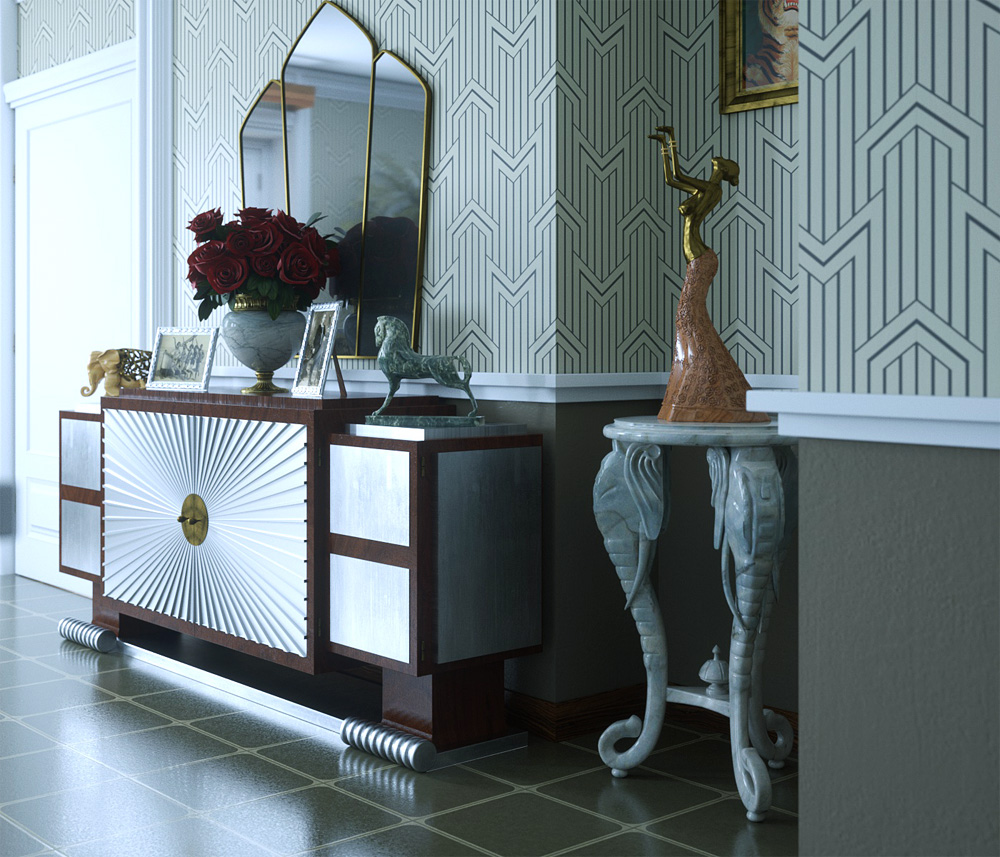 I post some pictures of an decò style design. All images were originally rendered in 1400x1200 and time for each is less than an hour with 10,000 samples in PT, but for some it would be enough even 8,000.