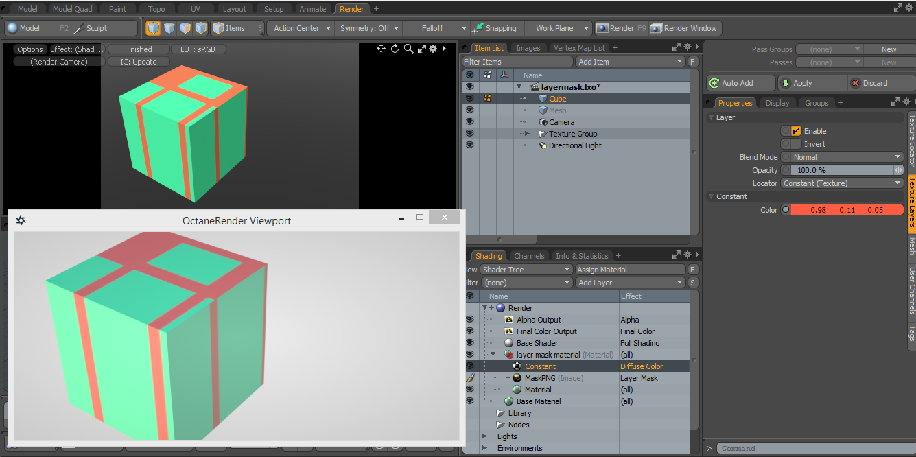 - Added support for the Layer Mask effect. This only works when the Layer Mask is applied to a Image in the Shader Tree, and only works with Constant and Image nodes above the Layer Mask with an effect of Diffuse Color