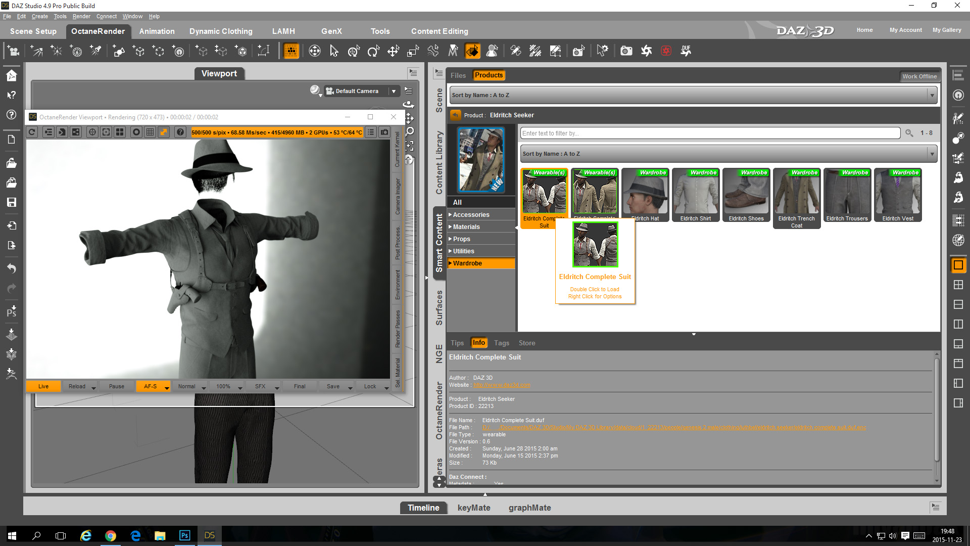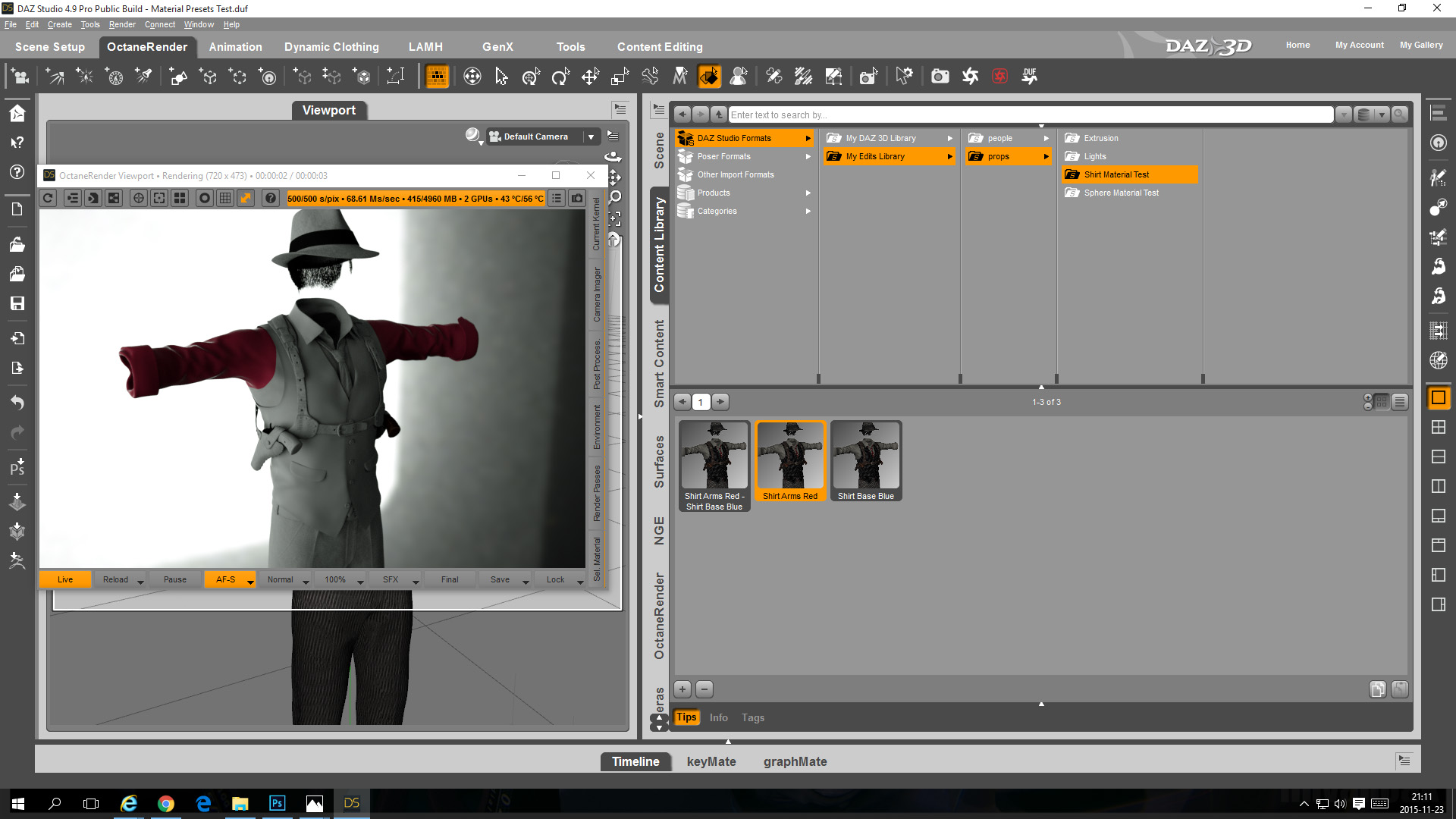 Note that in the preview image the color of the shirt is still default because in the OpenGL viewport OctaneRender material changes do not show up.
