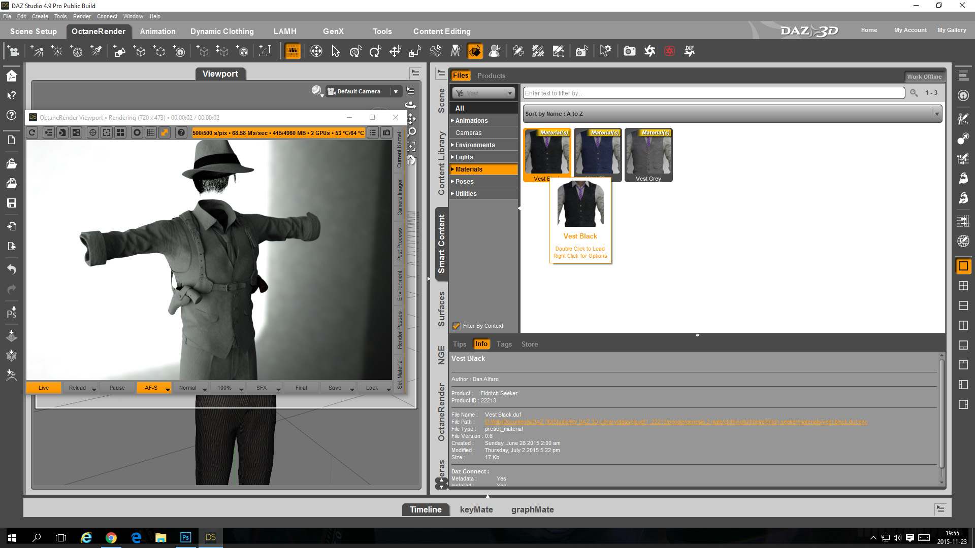 - customize your materials for 3Delight or Iray in the DAZ Studio surface tab