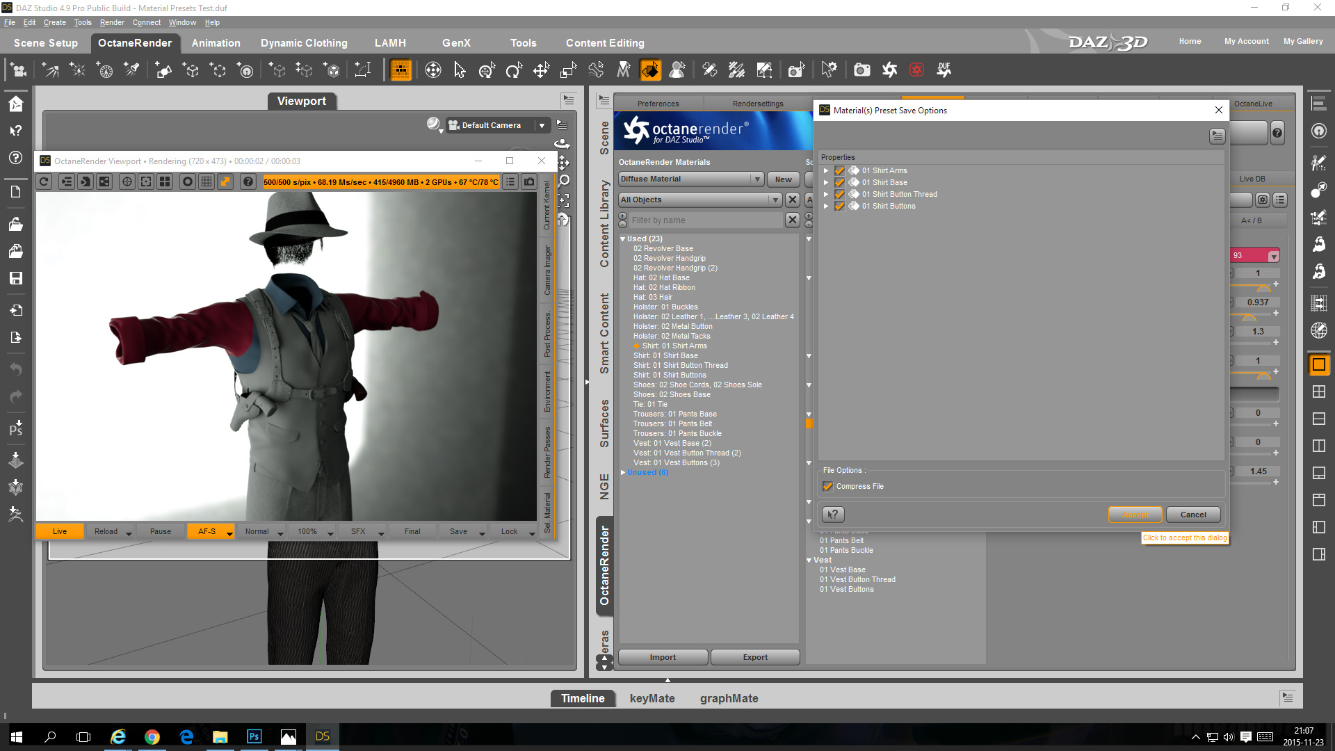 Saving wearable(s) with OctaneRender materials included - not yet tested