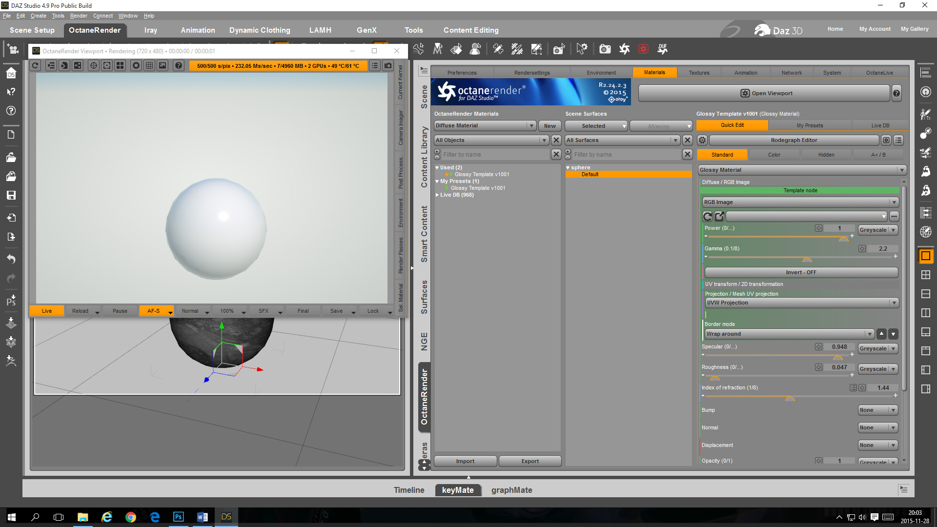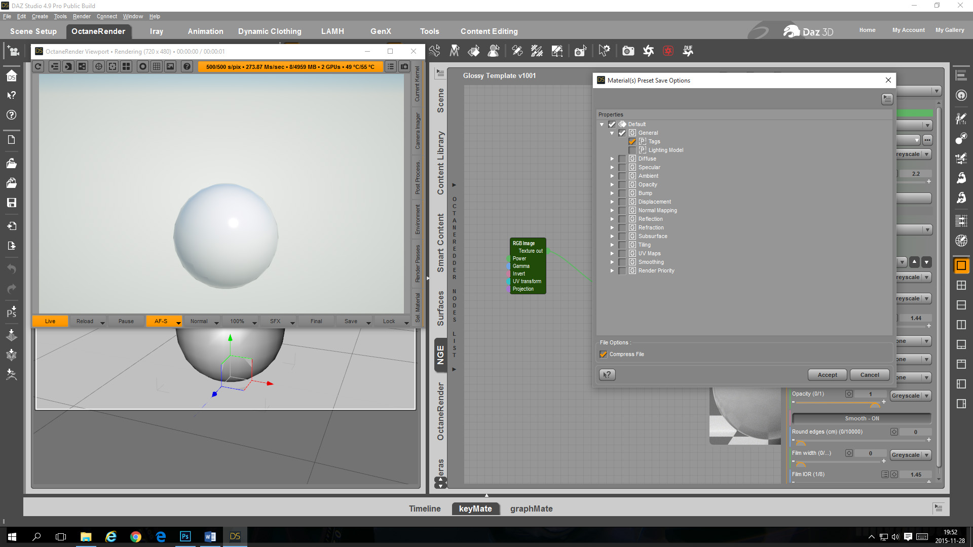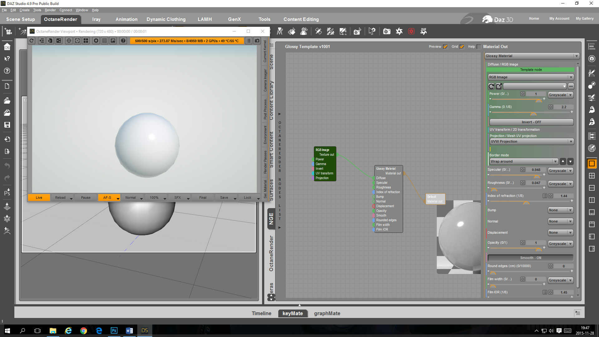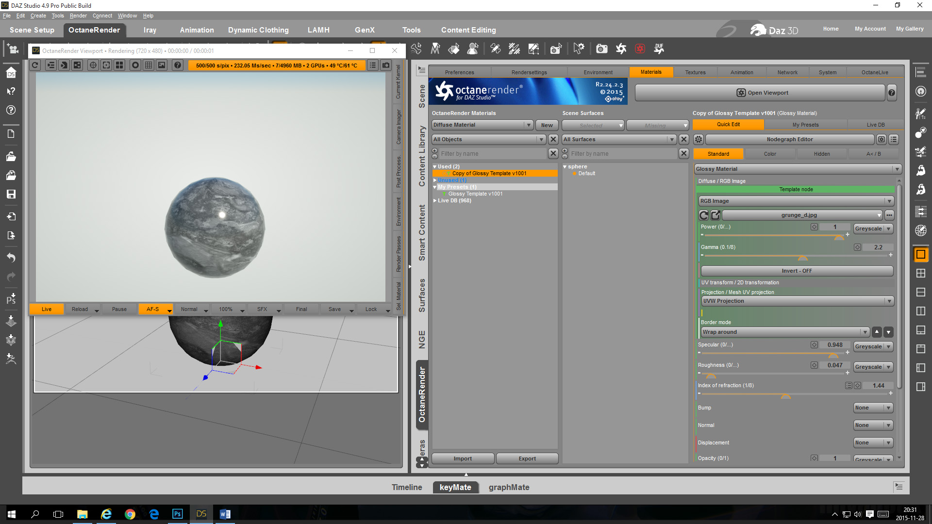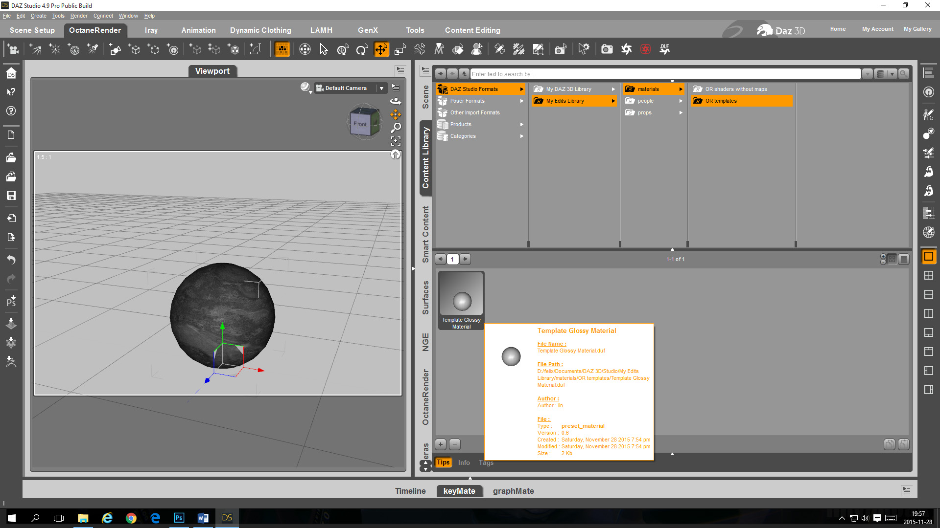 - Create your own Glossy Material Template in the OcDS Node Graph Editor with a template for a diffuse map