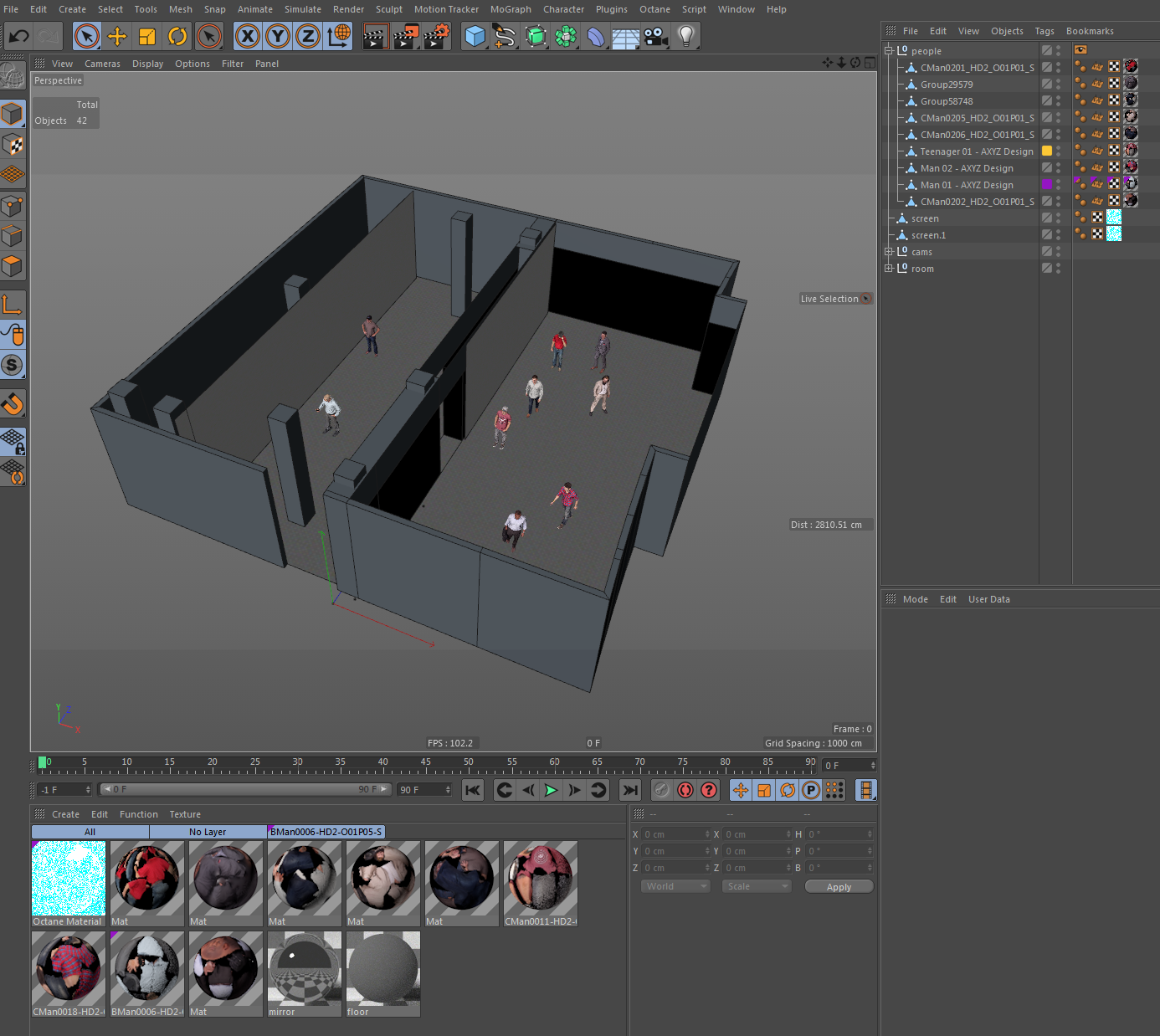 I think the textures for the people are the problem. Exporting scene data to LiveViewer takes about a minute with the textures, and just a second if i take them out. So octane needs a minute with these textures to start the LiveViewer. Is there any possiblity to speed this up? do I need to make the textures smaller?