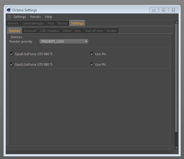 You only want to use priority on the card or cards you have monitors plugged into. What this does is to throttle the render on the GPU down to keep your desktop responsive so that you can use it. You can actively change the priority depending on how you want to use your computer. Set it to high if you want more GPU time to go to the render, set it to low if you want the desktop to be more responsive and you don't mind if the render takes longer.