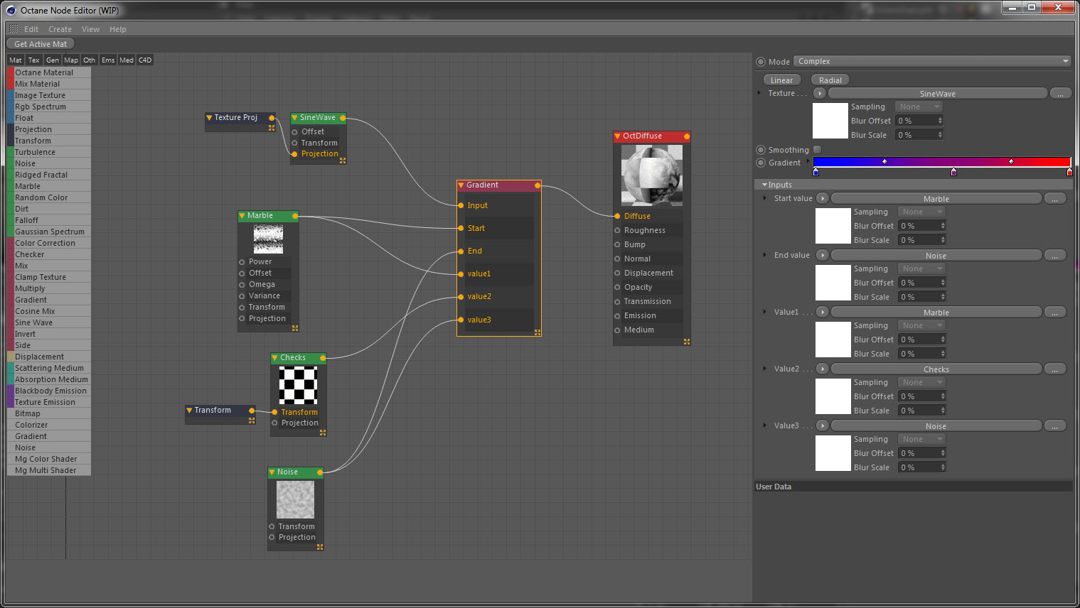 I'm trying to rebuild the MBB quixel PBR node in c4d, and there comes a problem when switch gradient node to complex mode, I can't make start value driven by any nodes I try(FloatTexture or MixTexture), but it can be done in standalone, anyone knows the reason? thanks.