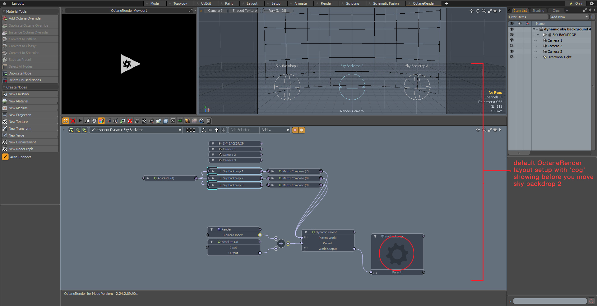 - Use default OctaneRender layout (with the node workflow window open by default)