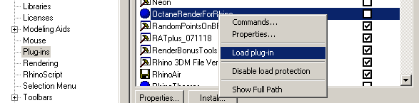 The Octane plugin is enabled at the plugin list, but not the current render. Important step: choose Rhino renderer, disable the Octane UI at the properties tab, close Rhino and restart (Also for this test I disabled the Vray plugin before, so it's not loaded during the crash. Rhino crash with and without Vray is loaded at the background, so the Octane crash shouldn't be caused by the Vray plugin).