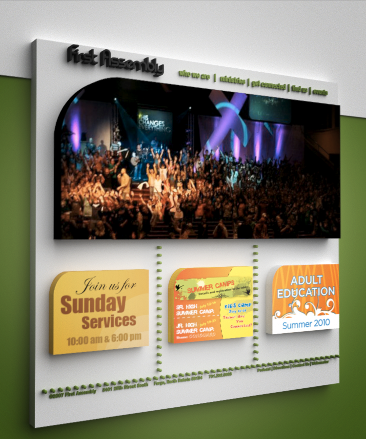 Wasn't ever made for anything beyond just fun/practice, but thought I'd shoot it up here, I updated the images, and removed some of the text that was no longer there, but some of it still doesn't match the site it was modeled off of ( firstassembly.fm ).