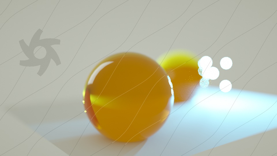 The first one is C4D's native Physical render. The render took 15 minutes. I used GI with low settings, and Sampling quality set to High. The graininess is minimal, the gradients are smooth, it's totally production worthy. However, the bokeh is very unsexy! I couldn't get any decent bloom, however much I turned up the intensity of the lights.