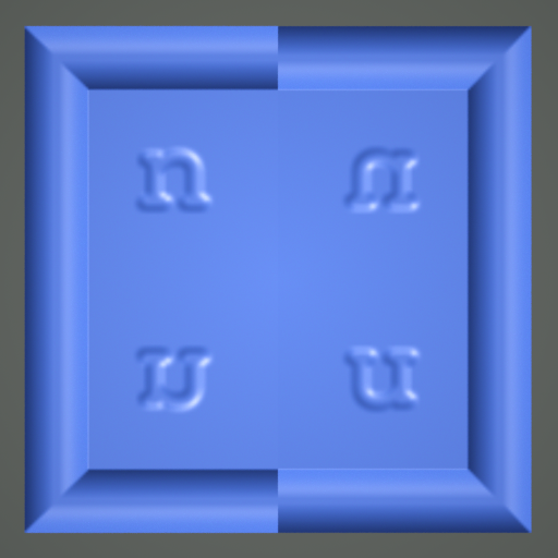 Note that although you only see one seam, the normal map is wrong in the upper right and lower left quadrant. Note the orientation of the highlights on the mirrored n.