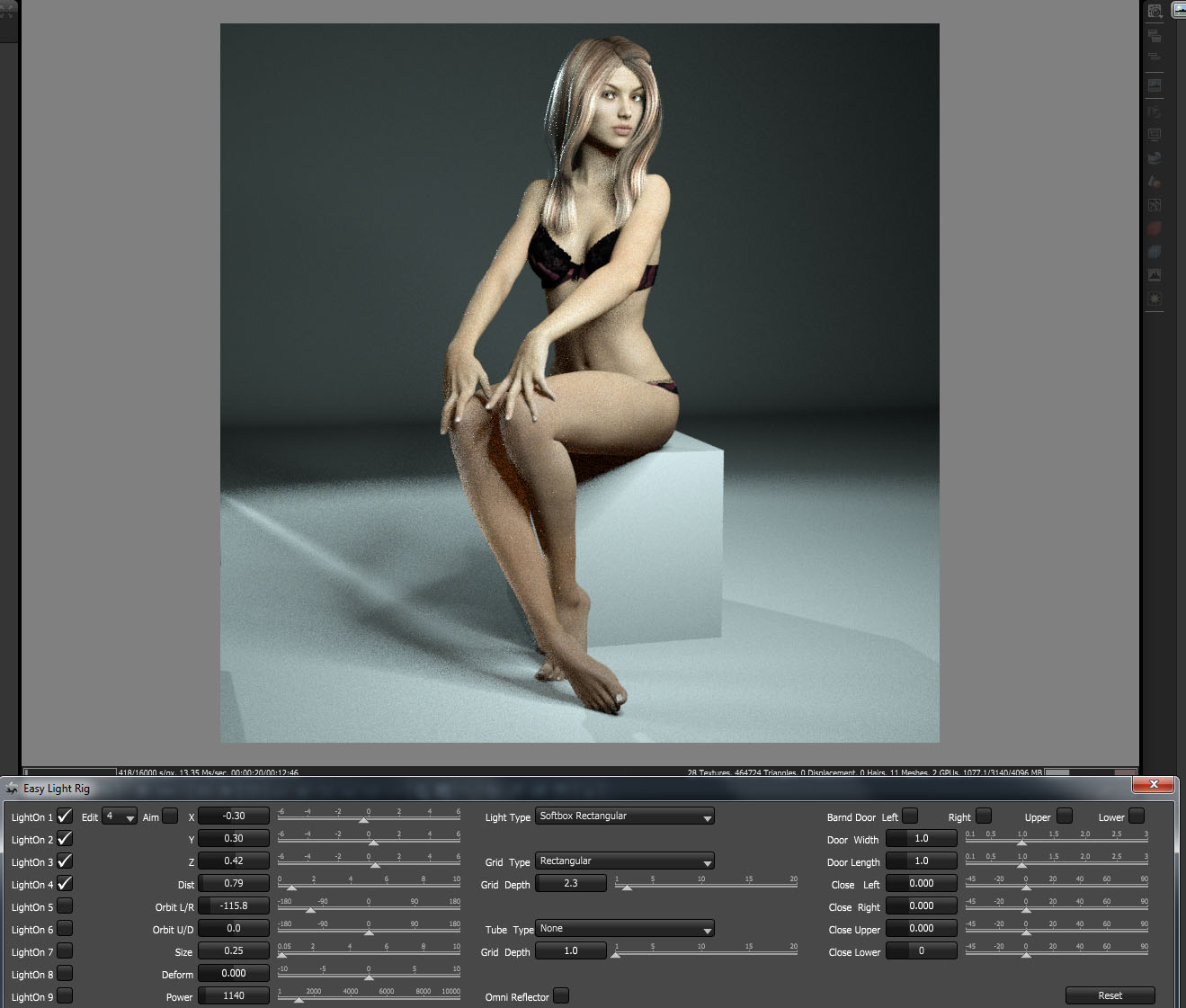 And one omni light with reflector for some rim light.