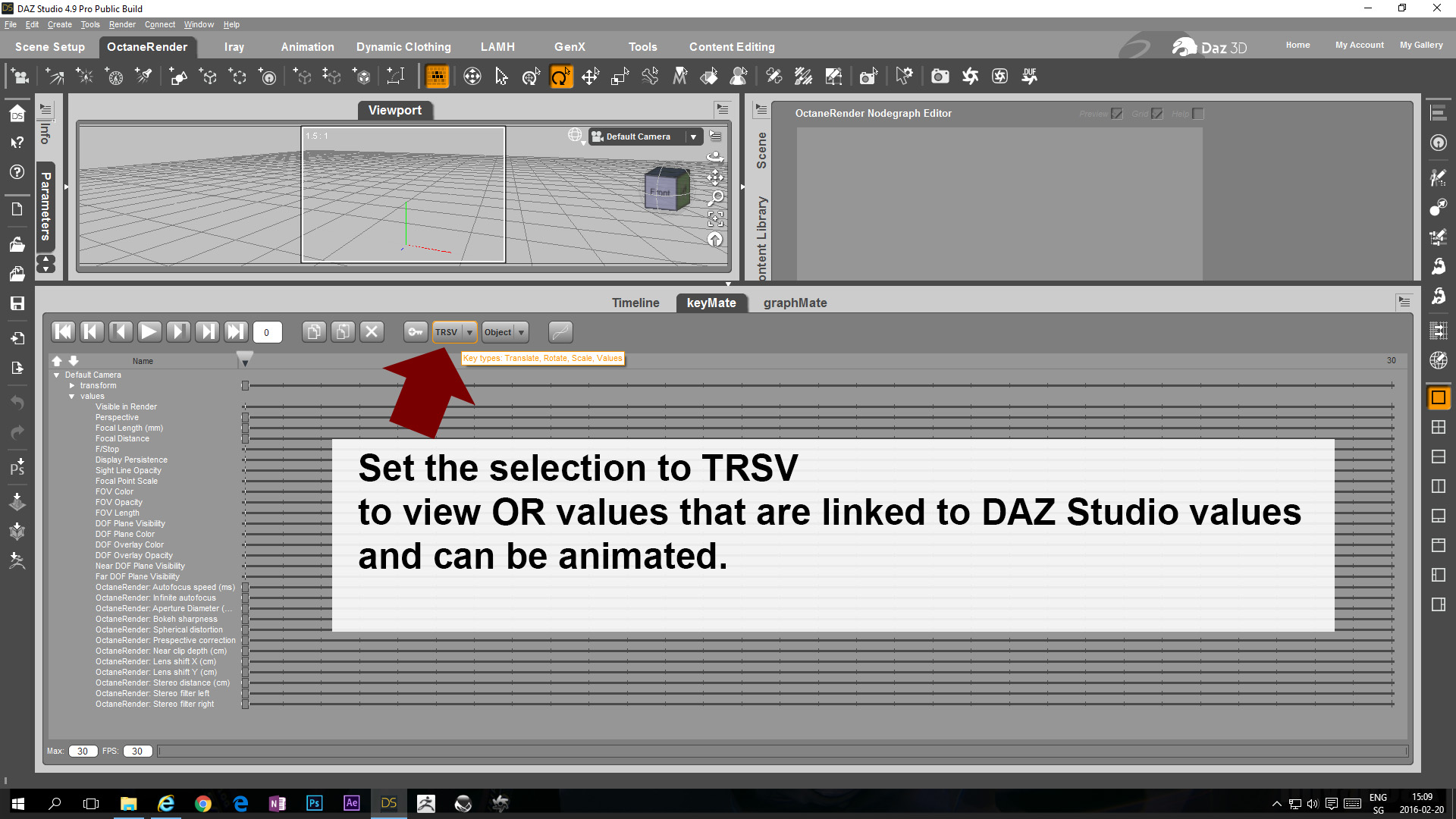 From that point of view it is very disappointing that so far no solution has been found to make the OcDS specific animated values show up in the existing DAZ Studio timelines of keymate, graphmate or animate.