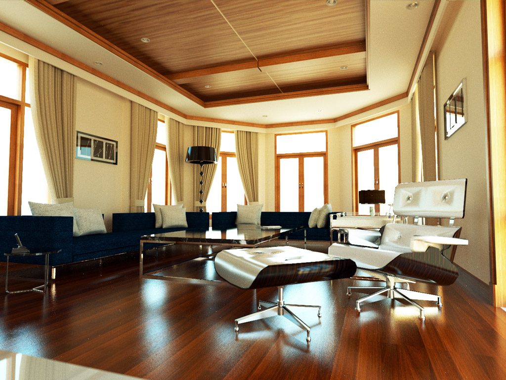 the interior render is very nice, but you should really supersample your renders to get smooth anti-aliasing using this technique: