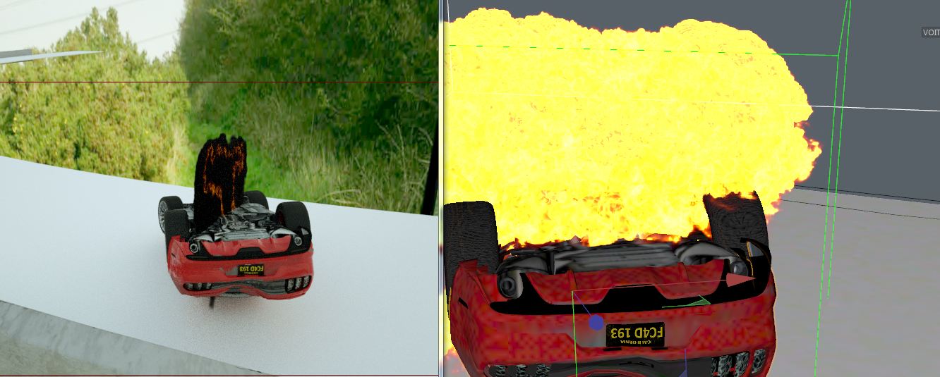 When i copy/past the turbulence FD container from my test scene to my main scene and place/rescale / or place/and reajust container size it to my main scene. this is what happen on the 2nd screenshot.