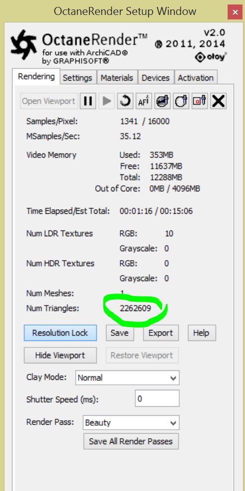 When using the Triangle Polygons 39 million were rendered this possible, this case was not only uses 6GB of memory.