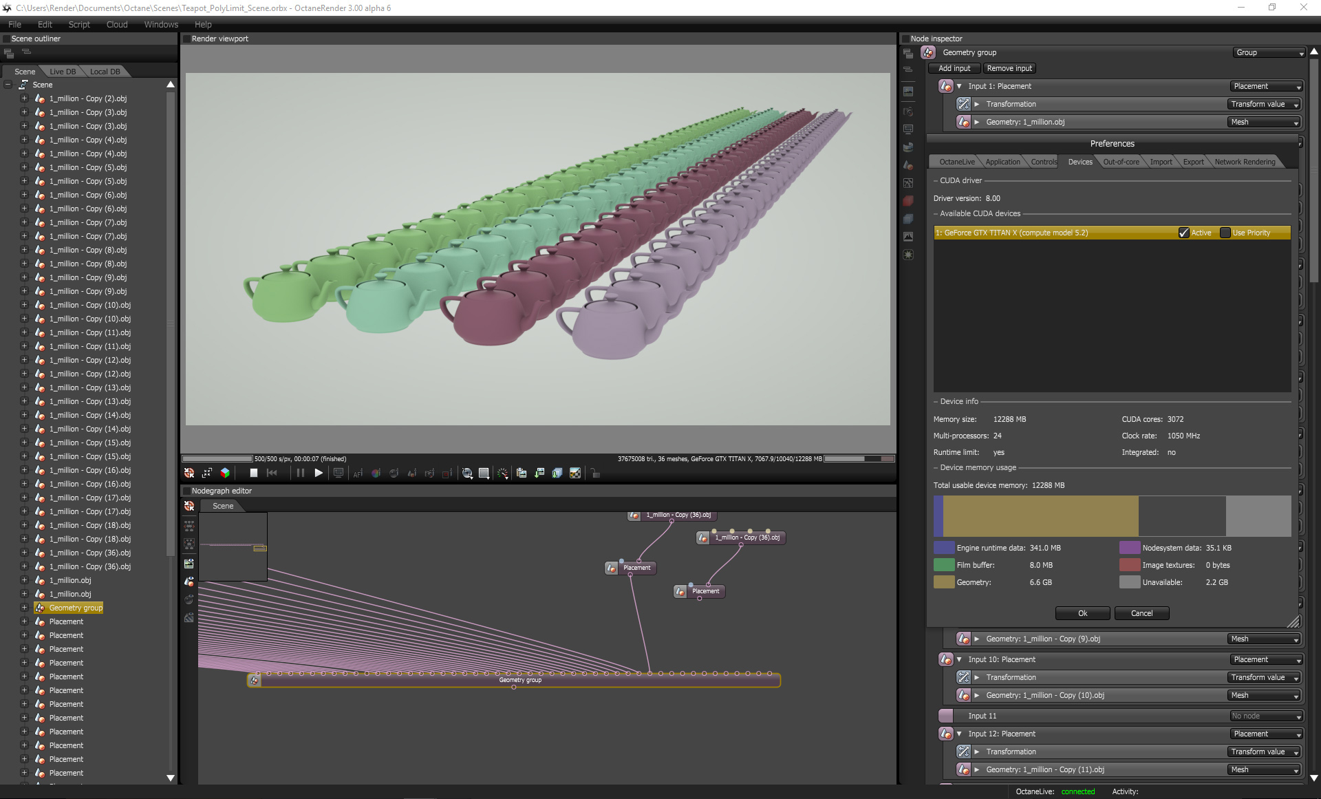 Are you working with Octane 3, right? ... if this is the case, it is clear the there is a limitation in the number of polygons that can be loaded (around 39 millions), even with a lot of free vram available.rappet wrote:Took more then a few minutes to load, but I got this: