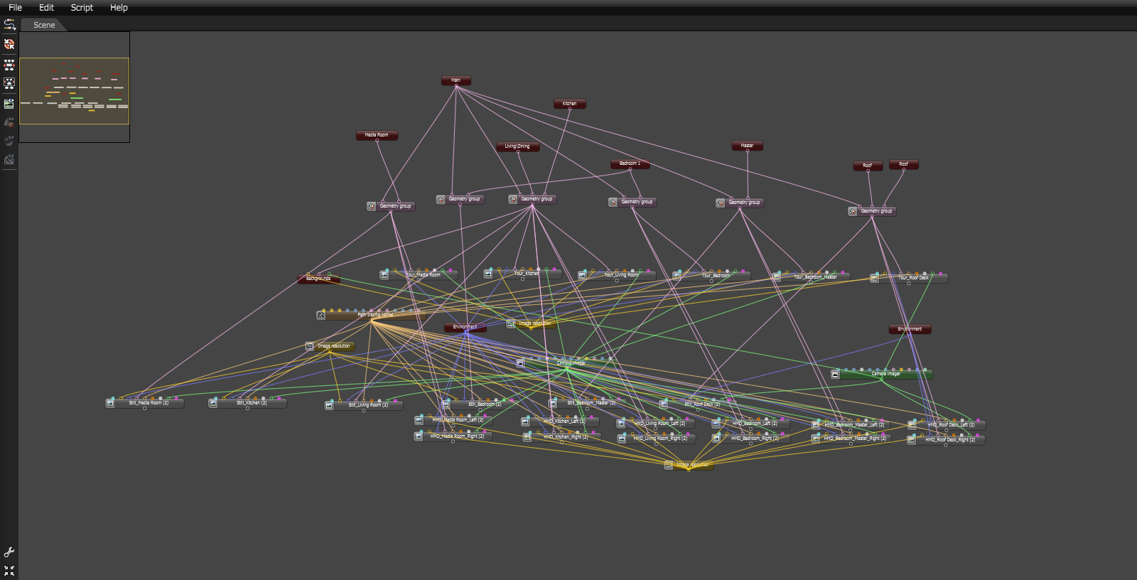 Essentially, If I have 40 render targets with different objs and all of them have the same material, I want to be able to change the material once and have it change it for everything. Currently the way to do it has a connection line from one macro to everything and it gets messy (and sometimes hard to select things because lines are covering it). It would be great if there was something similar to the input/output nodes for macros that allowed you to plug an input in and assign an ID to it, then plug your material into a node with a corresponding ID and have them connected without at line to each. This would make my scenes SOO much cleaner (especially when I connect kernels, cameras etc to several nodes so I can change them all at once). I attached an image of a scene that isnt that bad, but could really benifit from this feature.