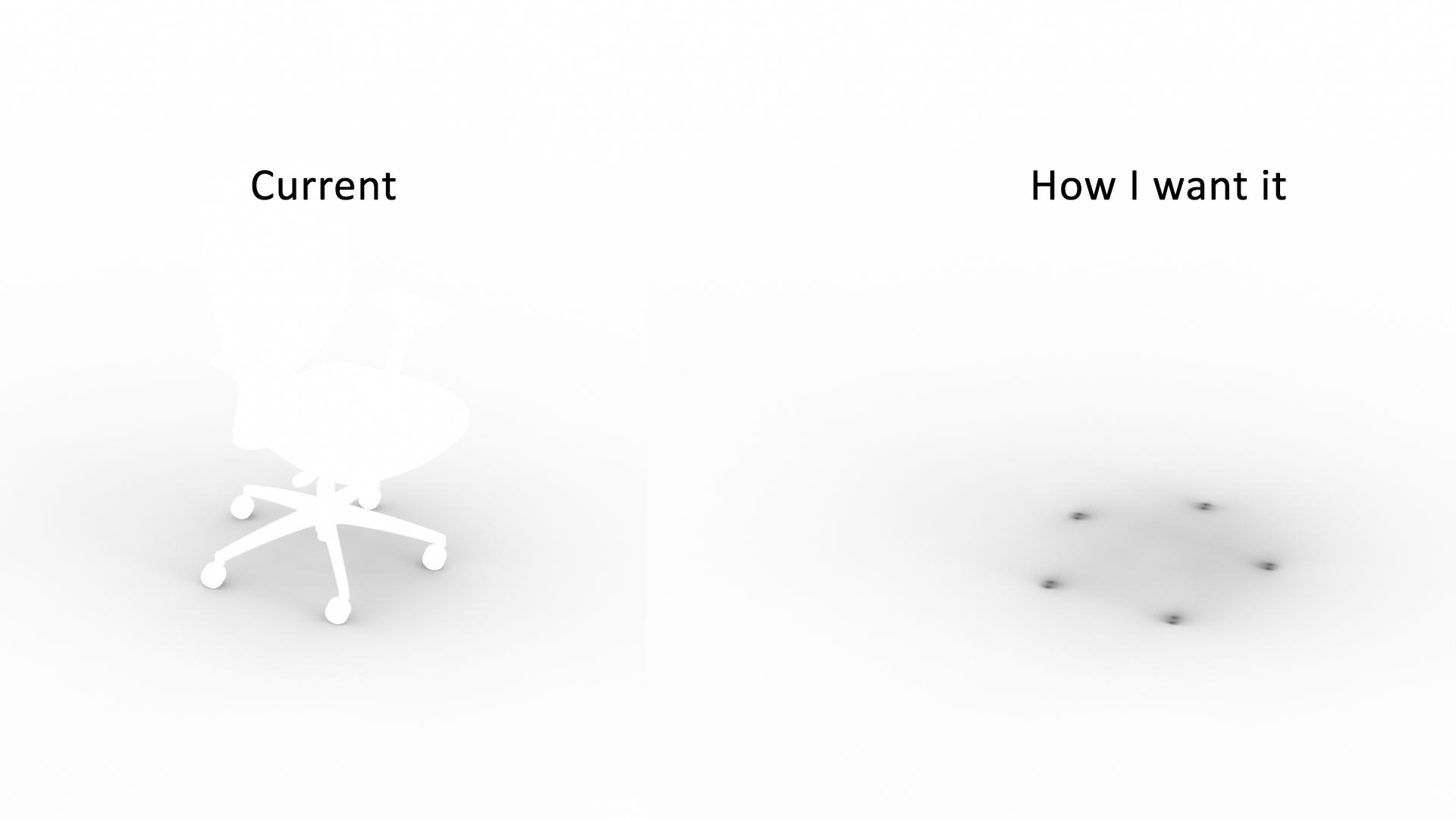 6. For shadow passes, it currently cuts out the object. This can create some problems when compositing because it has a small gap between the object and the shadow (this is more noticeable on lower res images). I attached an image that shows my work around. I separate the object and the floor into 2 objs and turn the camera visibility off on the chair. This way, when I place the object on top of my shadow pass in Photoshop, it works perfectly. This works but it creates more setup and you need to render twice (the chair is no longer visible on the beauty pass). I understand that the current way is how you would want it in some (maybe most) instances, but is it possible to add a checkbox to create it like my attached image?