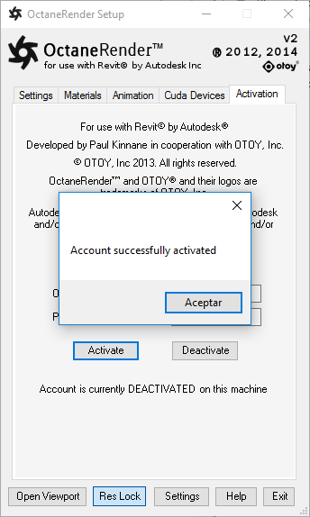 First MessageBox "unable to load Octane data" and then I have activated the plugin but when I change to any tabs show a box "You must activated the plugin..." or something like that
