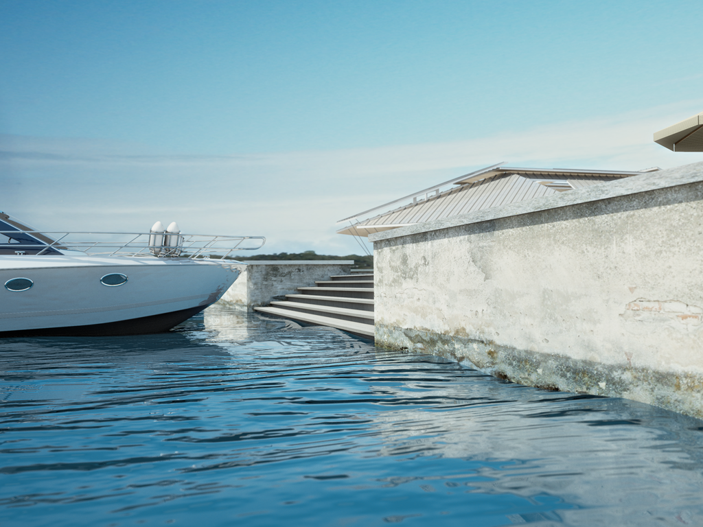 about the background: all of the boats except the one by the steps are on a backplate