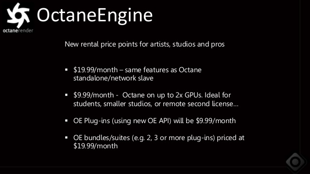 calus wrote:Yes plugin for 9.99/month also but not all plugins at the beginning, OE plug-in, they must be compatible with OctaneEngine tech.