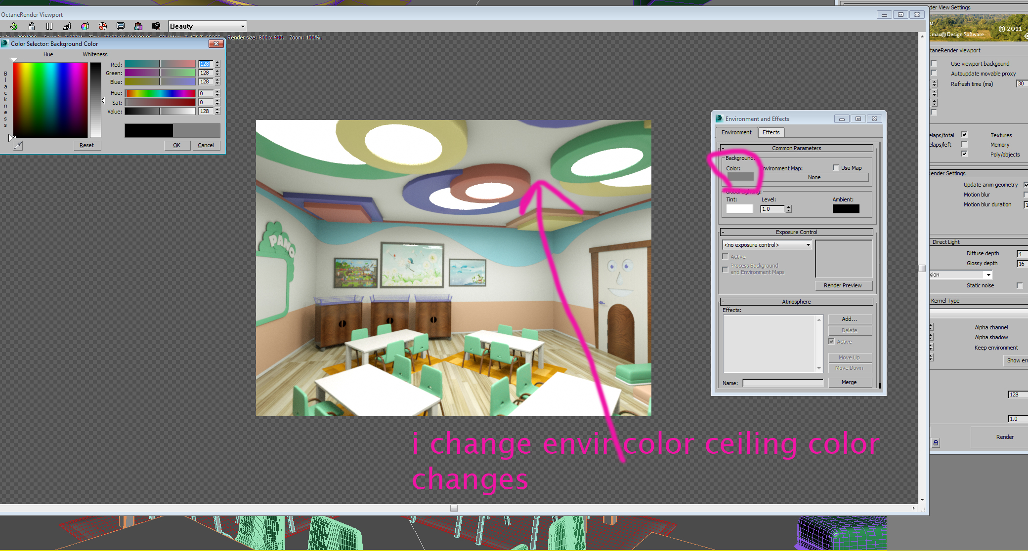 We use AO and if we set our environment to black or do not add the sun our ceiling is black, Also environment color and sun affect ceiling color but not walls even though it is fully closed in interior scene
