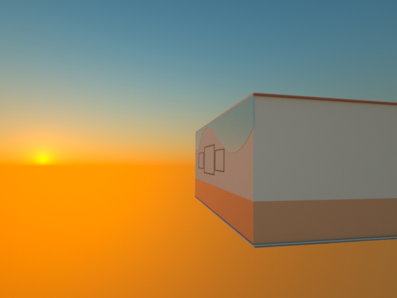 If you create a box made out of separate boxes one box for wall another for ceiling then add a sun light (dusk) ceiling get the color of sunset even though box has no holes