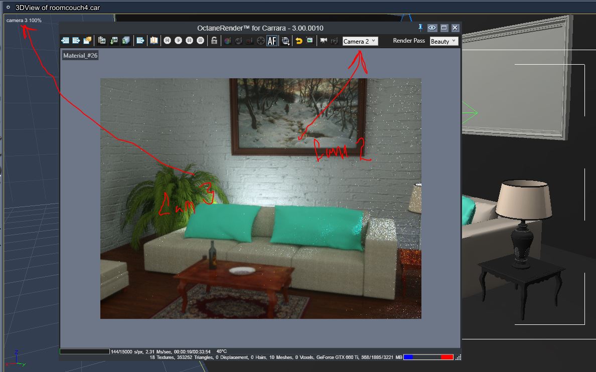Interesting that CTRL+SHIFT+R brings up the camera that is set in the Render room and not the one used in the Assembly room. In my test scene I have 3 cameras, I set Render room to camera 3 and return to Assembly room. Press render sequence and the Octane default camera is the one specified in the Render room and not my current view port. This is good to know.
