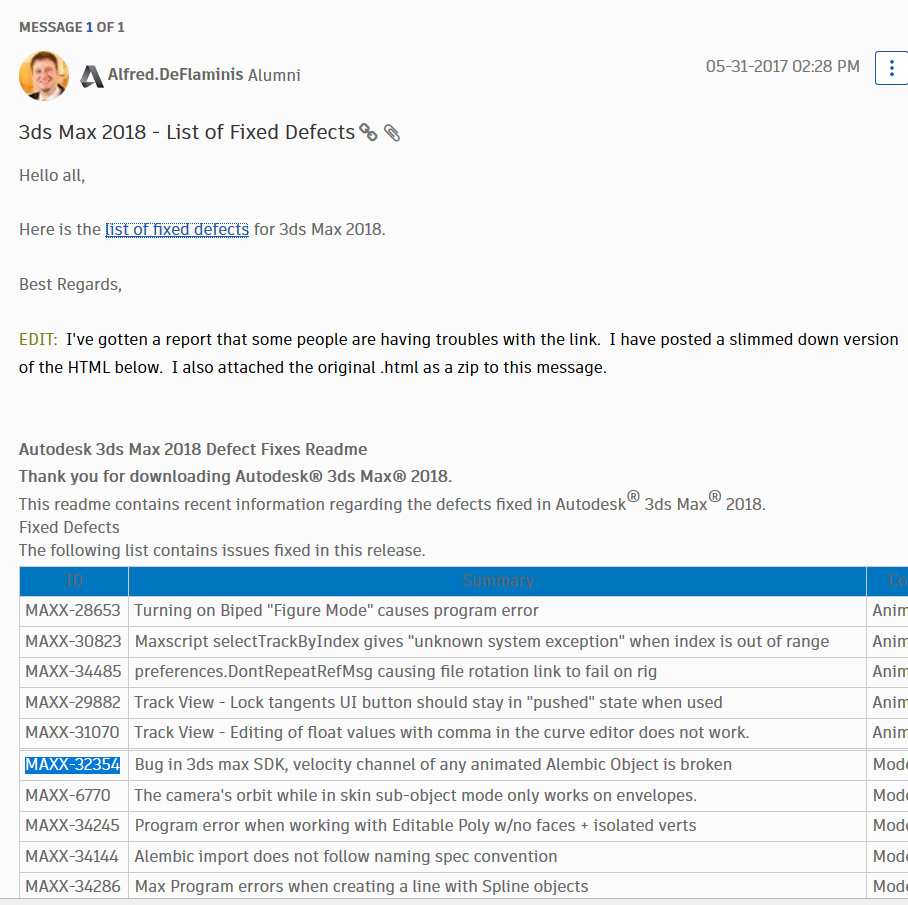 But happily, today they've finally sent a meaningful answer to our guy who has been trying to push on them all this time... It is confirmed that this is a bug in Autodesk 3ds Max application (as I've been explaining from the beginning). Now let's hope that they'll fix it in some of next service packs...