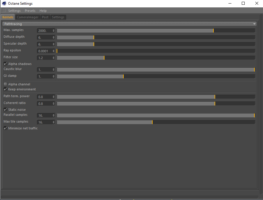 Hi everybody. I use Octane for Cinema4D for 2 weeks and I am like a child who marvels at a Christmas showcase. However, I still have some problems in my Kernels settings and I would like your advice to optimize this a bit. Here is a scene which I'm working on and I get the record with the current settings (picture attached). I have 2 basic octane lights and a HDR environment. What would you do to improve this? I find some reflections are still a little bit noisy.