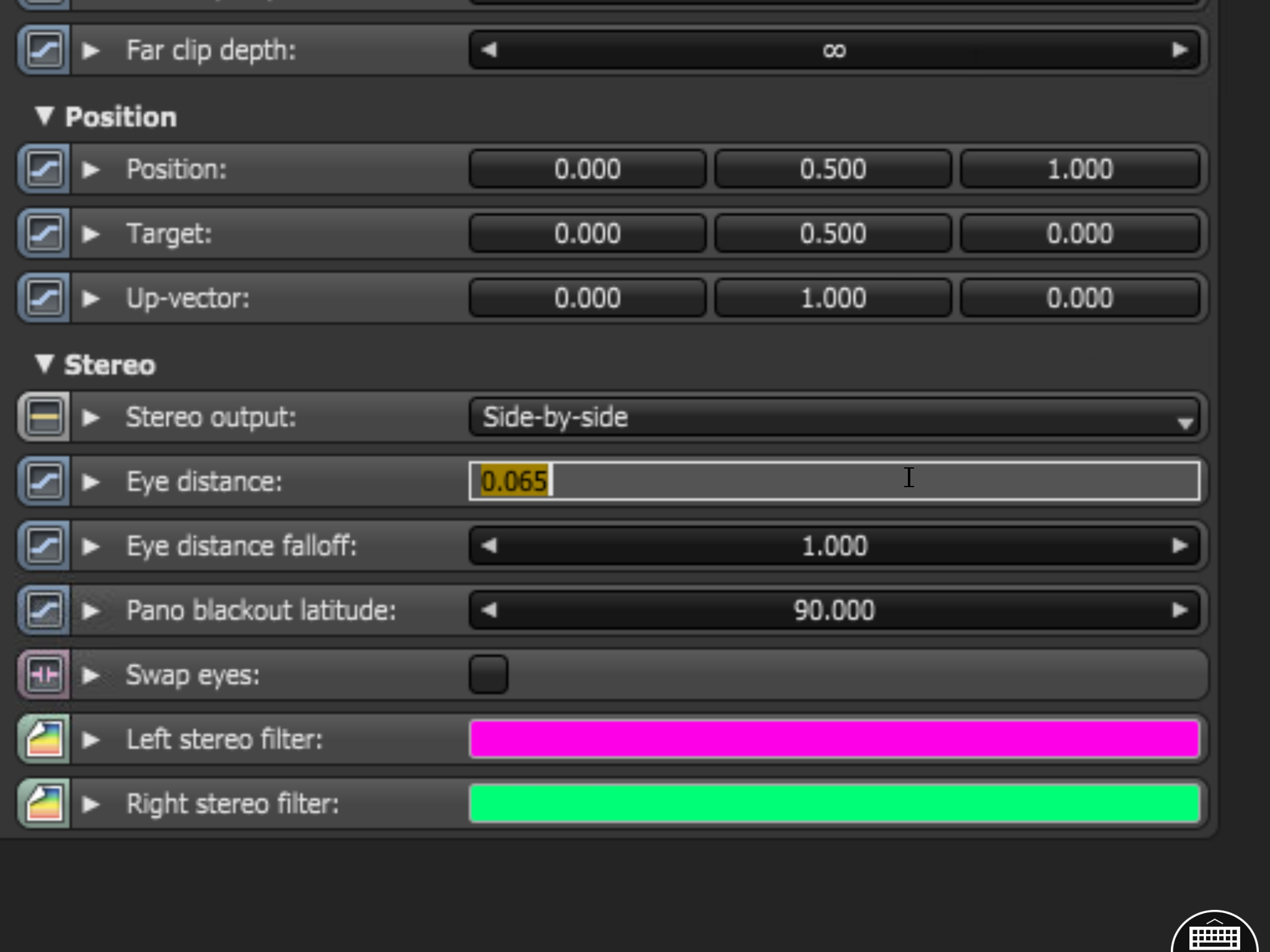 Yes sure, since the vision is splitted for the two eyes, the stereoscopic effect is very good, and you can exasperate or reduce the effect by changing the eye distance value in the camera stereo settings: