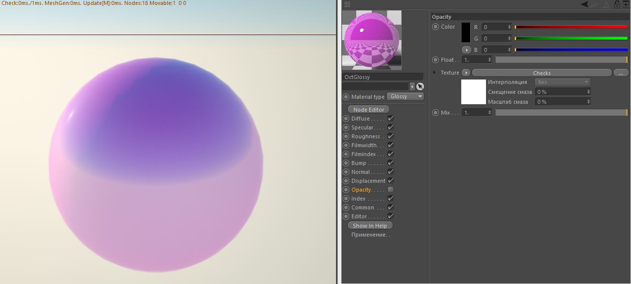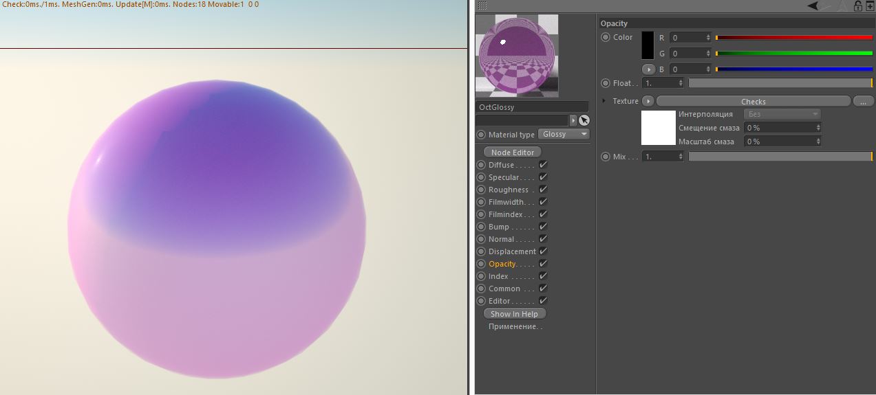 Thxlilbignik wrote:Hi. Found small bug. When add any texture to opacity channel in glossy material, main color changes. In render it looks correct, but in material viewport not.