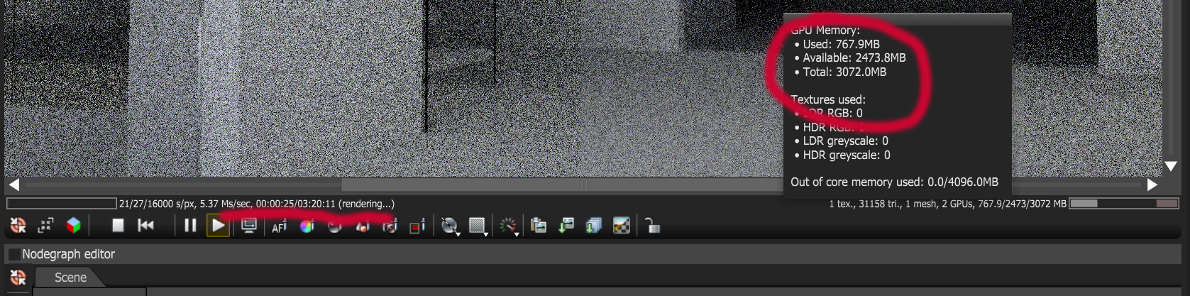 Vram is very unstable. Sometime it shows up right but all the time changing. I real don't understand , why ! I have 3GB vram. Standalone shows 2410 mb available vram , max plugin shows available 2010mb vram, sometimes 1700 mb vram, sometimes around 1400 mb vram