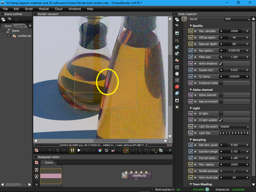 - PMC@44 diff-,@82 spec-depth,@10k rejects; 120k spp - 32h17min running my EVGA GF GTX 980 Ti SC+.